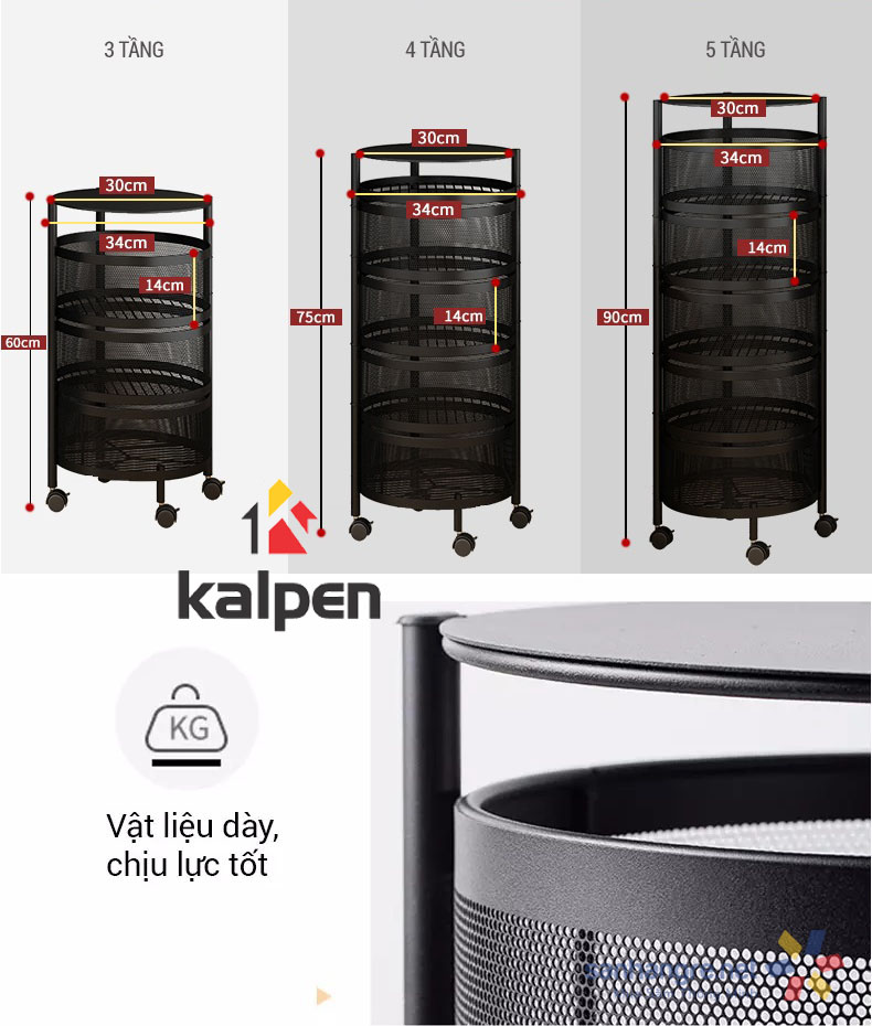 - Tiết kiệm không gian hiệu quả: Với cơ chế xoay linh hoạt, Kệ Xoay Tròn Màu Đen Sắt 3T giúp bạn tận dụng tối đa không gian theo chiều dọc, đặc biệt hữu ích cho những căn phòng có diện tích hạn chế.
